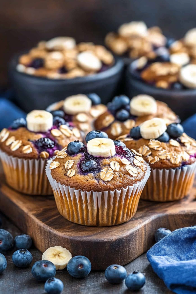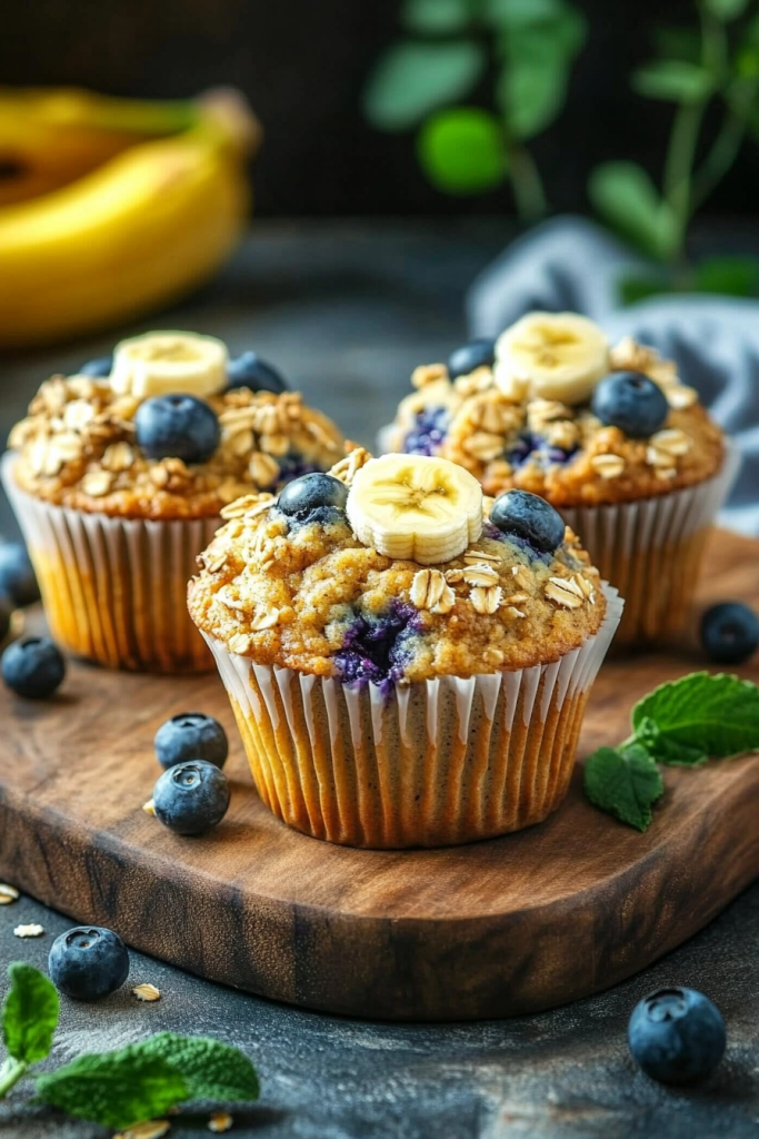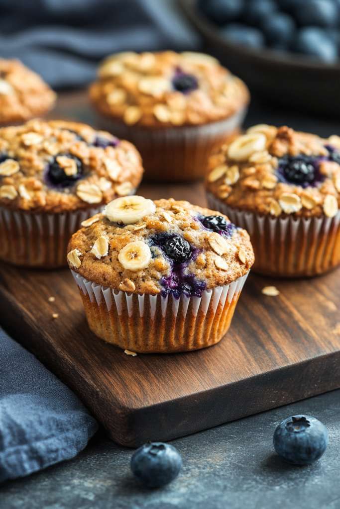 - Chocolate Chip Banana Oat Muffins – Swap blueberries for dark chocolate chips.