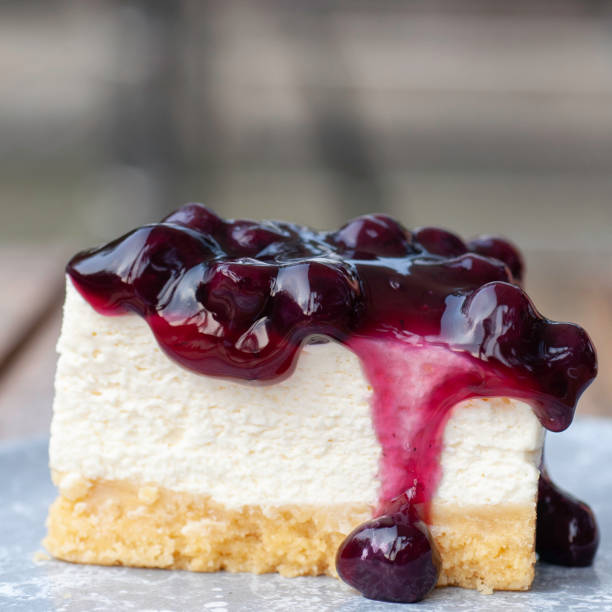 A blueberry cheesecake is a dessert that consists of a creamy, smooth cheesecake base topped or swirled with fresh or cooked blueberries. It can include a crust, typically made from graham crackers, digestive biscuits, or cookies, and may feature blueberry compote, fresh blueberries, or blueberry puree.