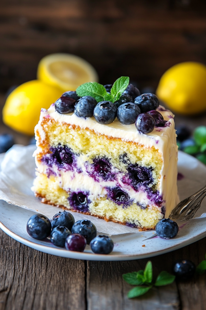 - Blueberry Filling – A homemade blueberry compote that seeps into the cake for a fruity burst.