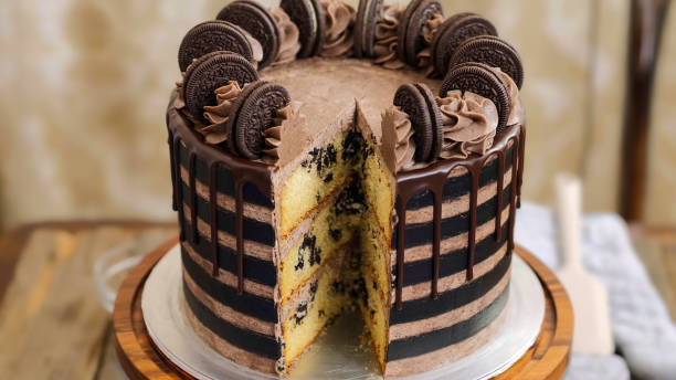 - Oreo cake is a layered chocolate cake infused with crushed Oreos, often decorated with Oreo clips, crumbs, or even whole cookies.
