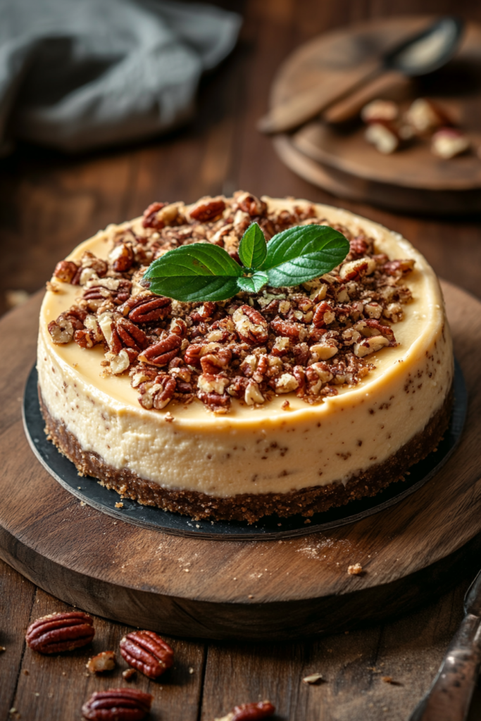 - Pumpkin Pecan Cheesecake – Mix pumpkin puree into the filling for a fall-inspired twist.