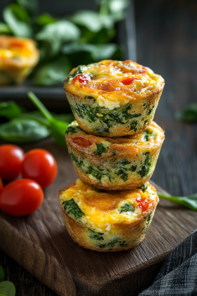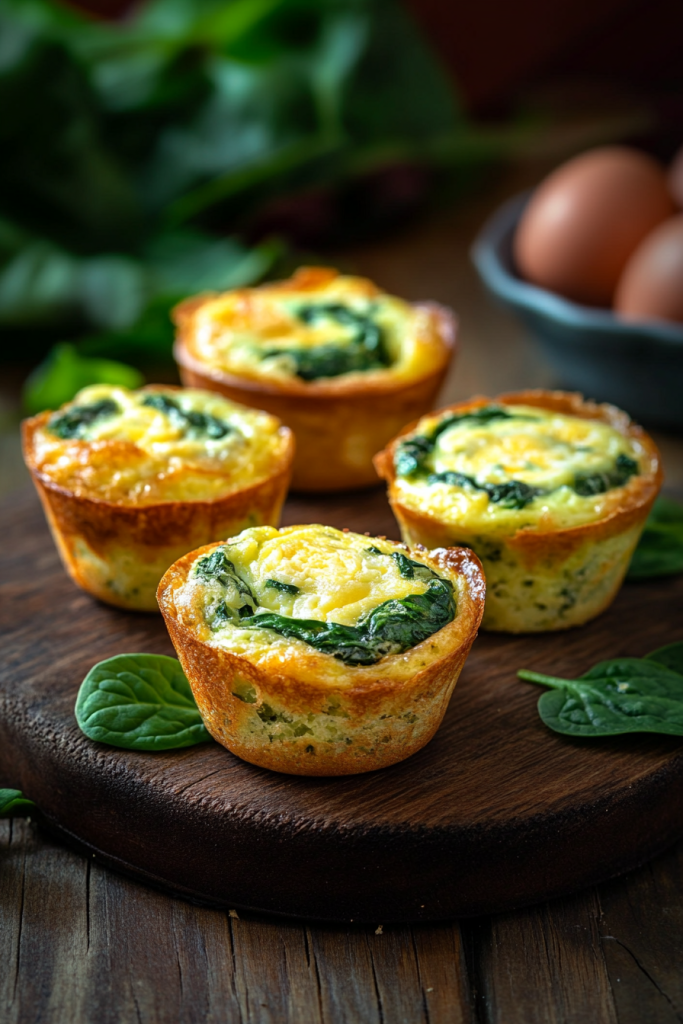 Spinach Cheese Egg Muffins are mini egg-based frittatas baked in a muffin tin. They combine fluffy eggs, nutrient-rich spinach, and melty cheese, creating a perfect balance of taste and health benefits.