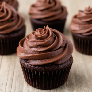 Buttercream frosting complements the cupcakes perfectly: it’s smooth, buttery, and can be whipped to hold its shape for beautiful piping. It also balances the cake’s mild sweetness with rich texture, making every bite a delight.